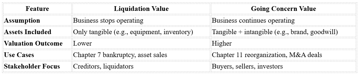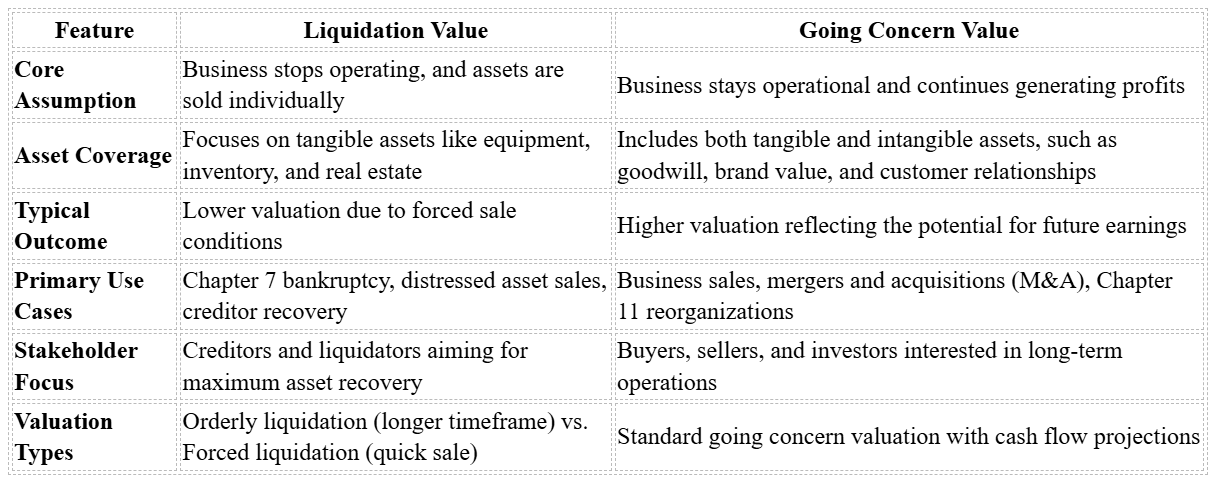 Main Differences Between Liquidation Value and Going Concern Value